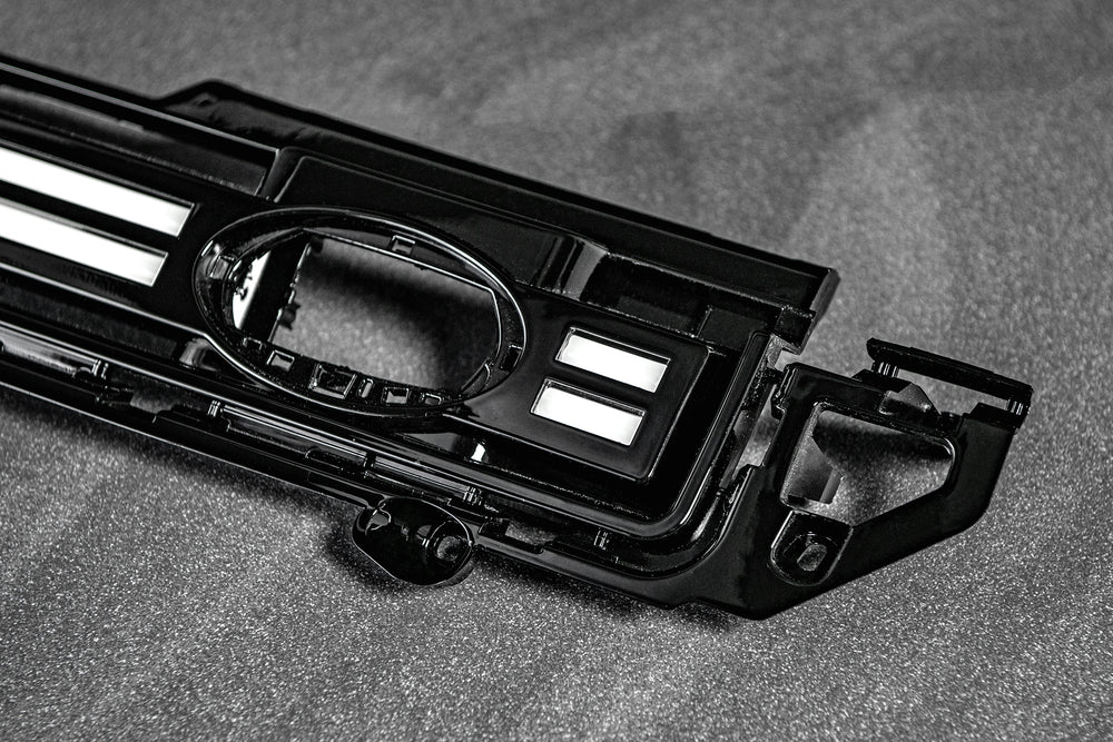 The grille not only adds to the vehicle's aesthetics but also ensures functionality with its well-integrated lighting. Additionally, this Defender grille comes equipped with a slot to house the original Land Rover factory badge, ensuring that the iconic emblem retains its rightful place. Crafted with precision, this grille is the perfect blend of modern design and functionality, tailored for the discerning Defender owner.