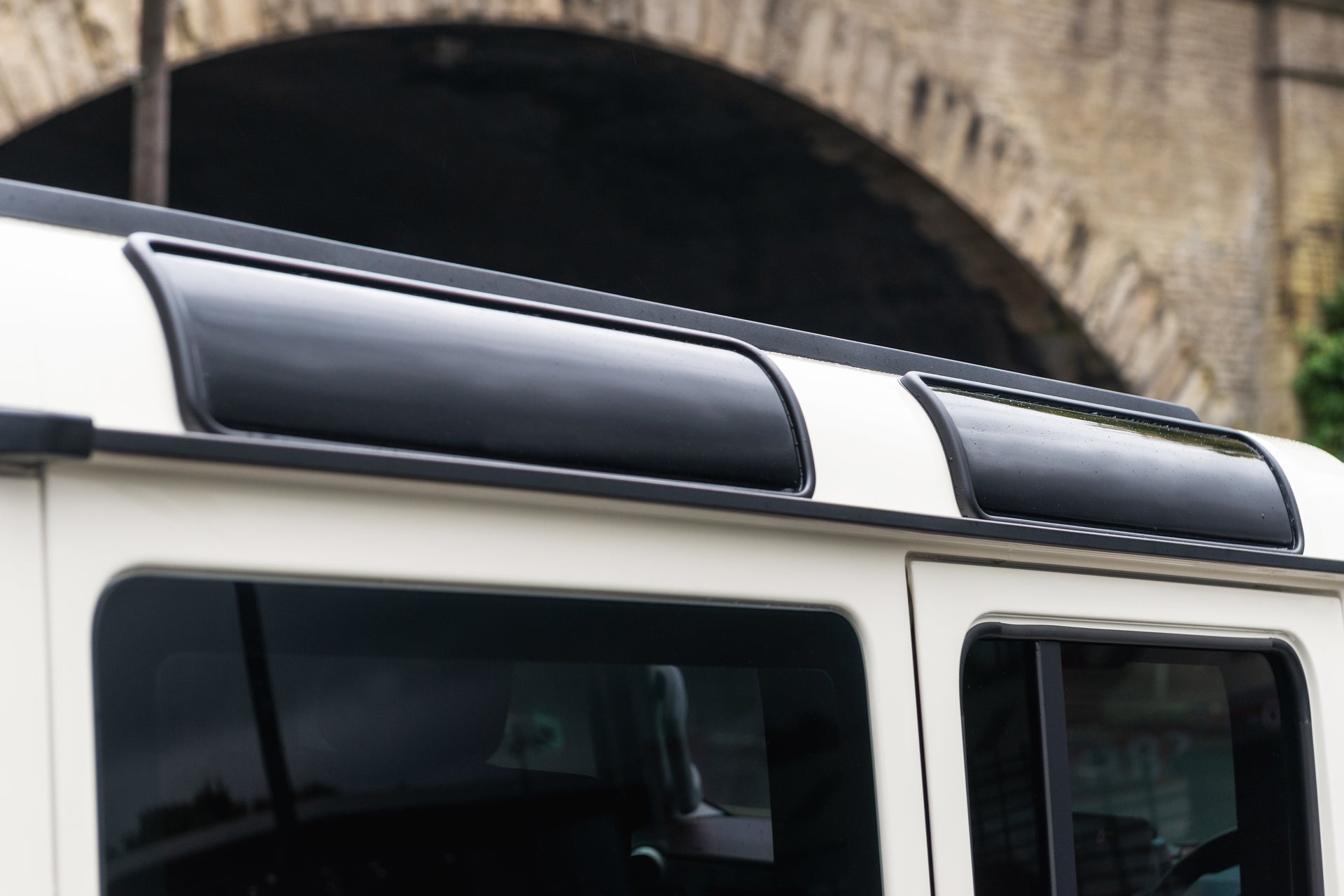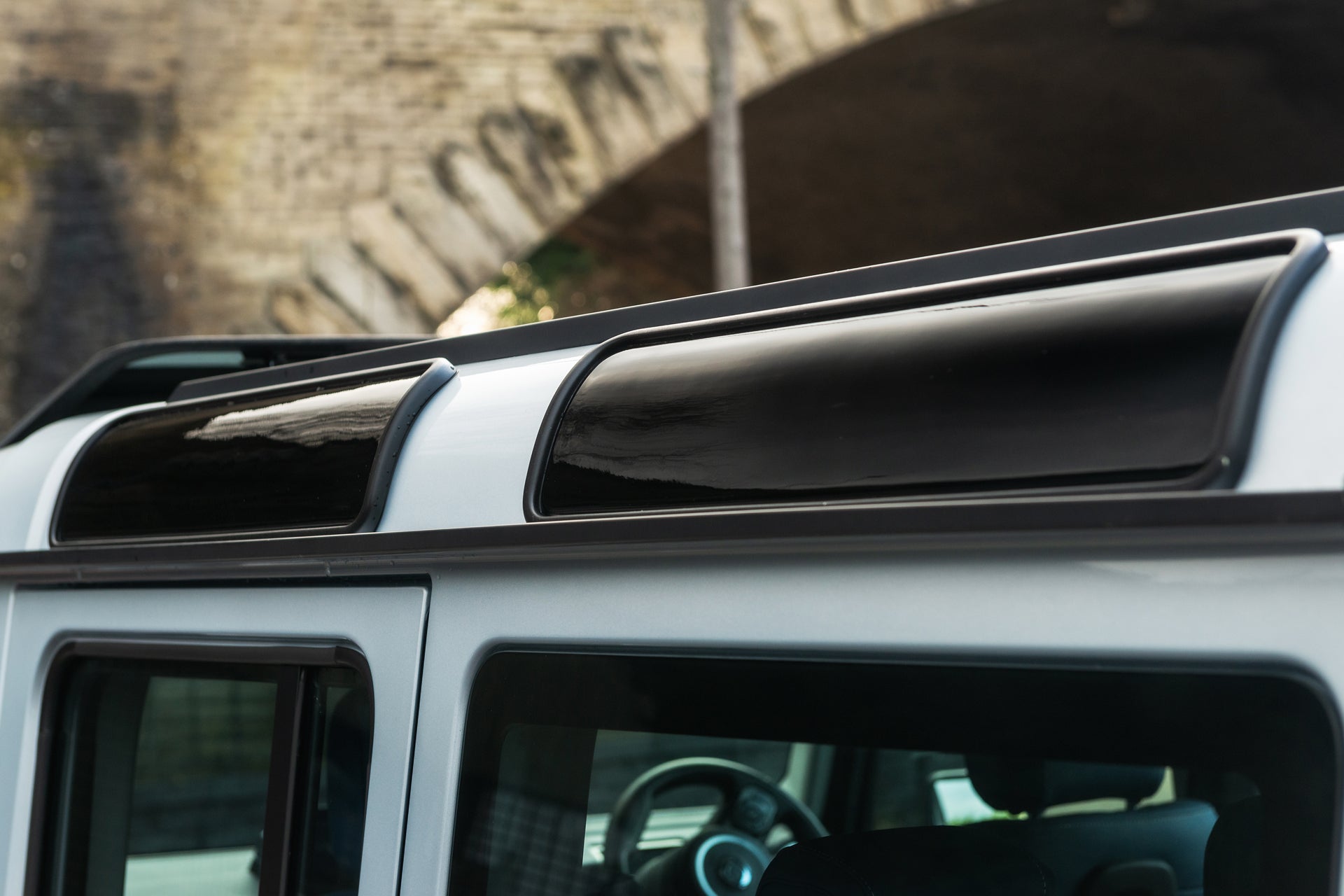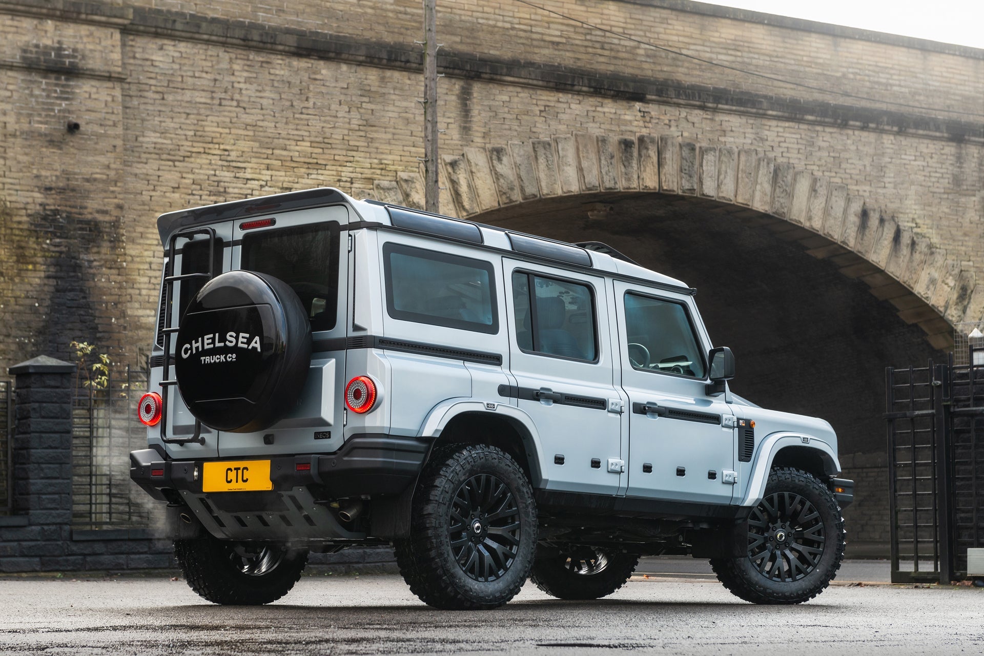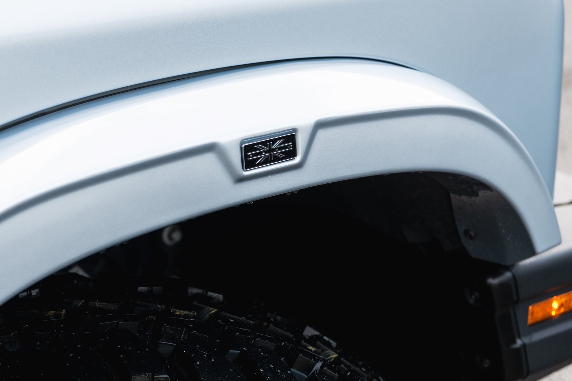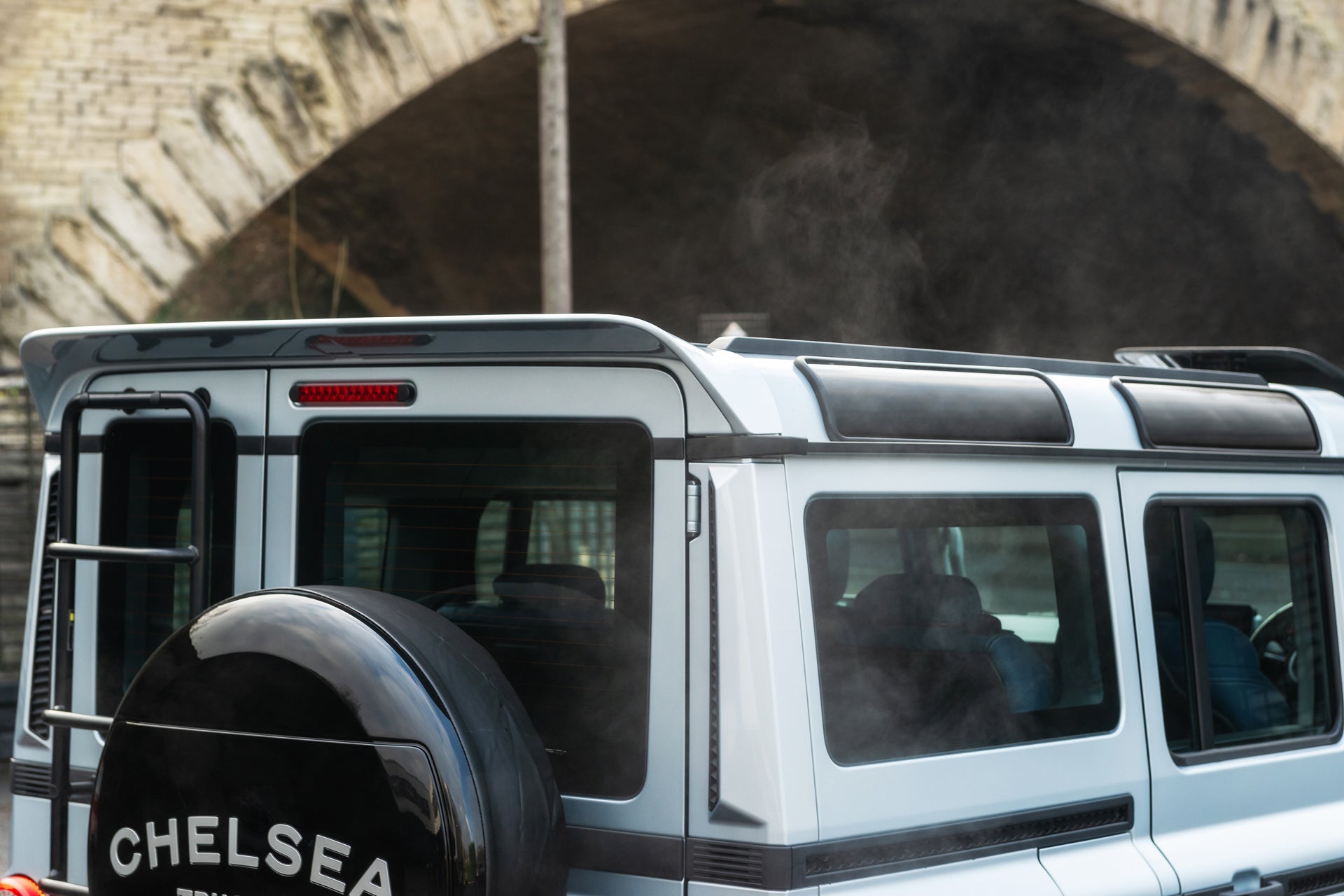 Finishing the exterior, the Chelsea Truck Co Hard Spare Wheel Cover features an engraved CTC logo and glossy finish, providing protection with a premium aesthetic. KAHN® Union Flag badges, crafted from zinc alloy and finished in polished chrome and satin black, are integrated across the arches, cowl and roof wing to deliver a subtle but distinctive British touch.
