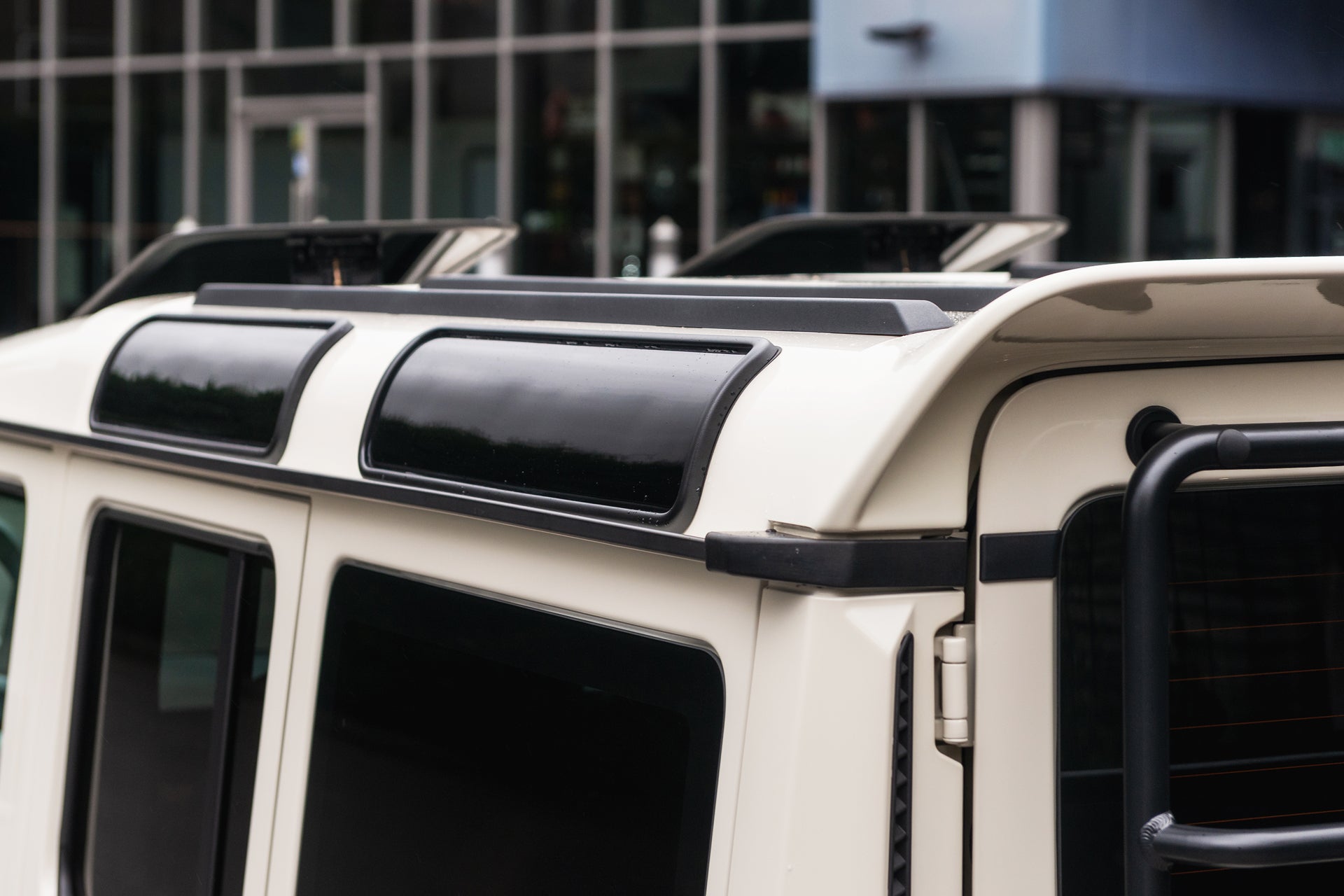 At the front, the package includes the 3-piece Hammer Grille Cowl — a modern redesign that sharpens the Grenadier’s identity. With its sleek, minimalist details and bold aggressive edge, the Hammer Mask adds real visual power to the vehicle’s face. At the rear, the Large Upper Rear Roof Wing introduces subtle sportiness and aerodynamic elegance, giving the SUV a more streamlined and refined silhouette.