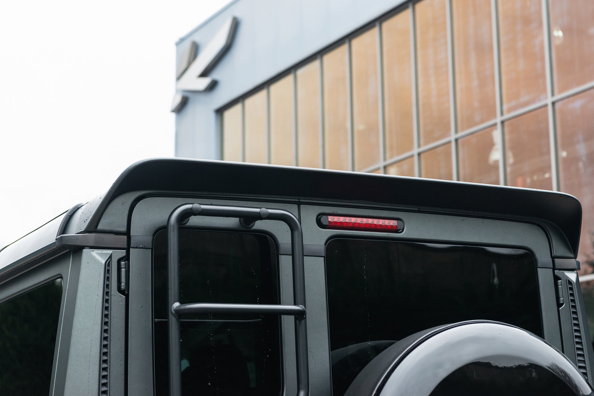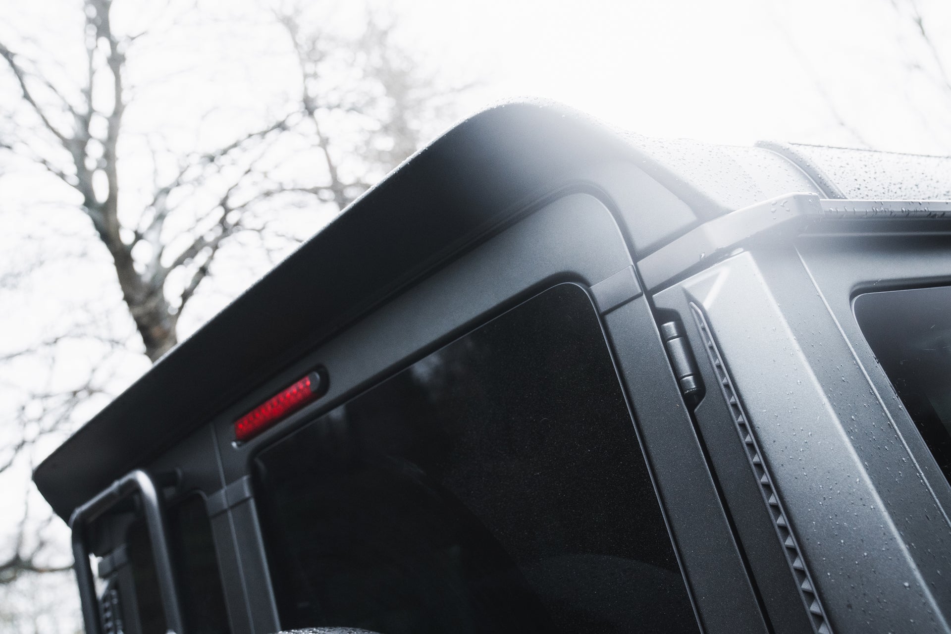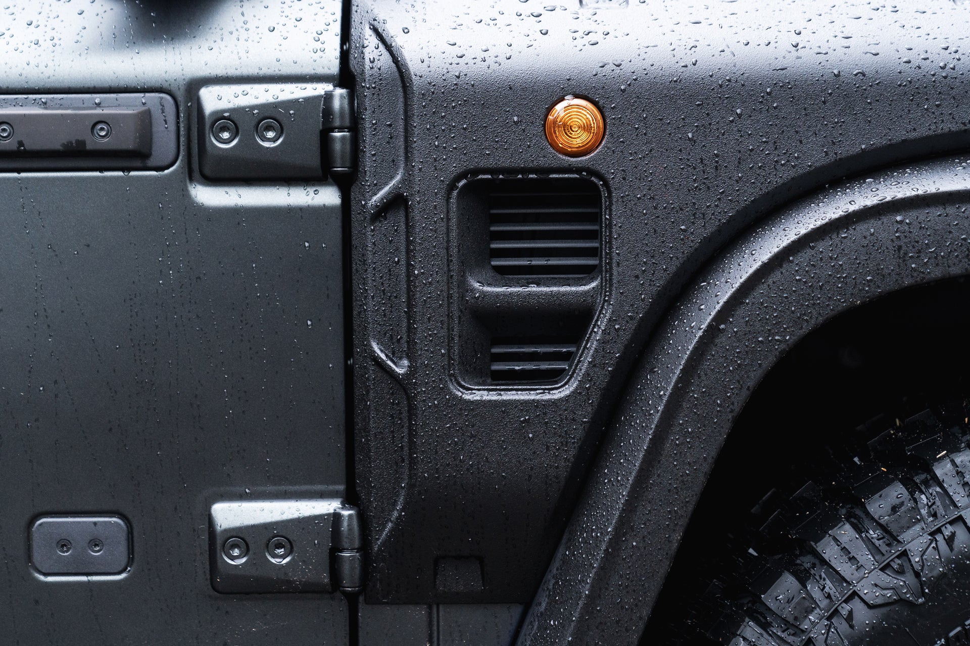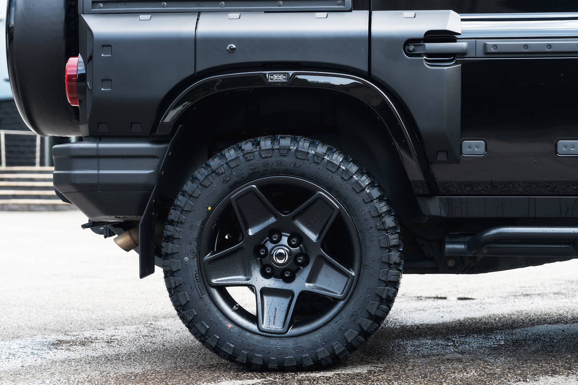 The kit combines wide body styling with unique detailing such as the Hammer Grille Cowl, Roof Wing, Mondial wheels and spare wheel cover, together creating a purposeful and commanding finish for the modern Grenadier.