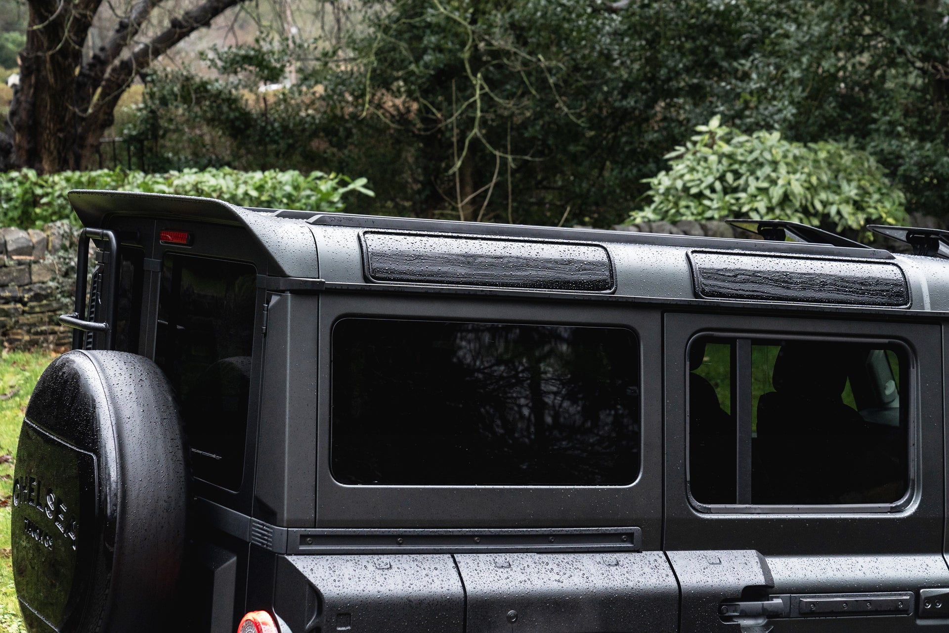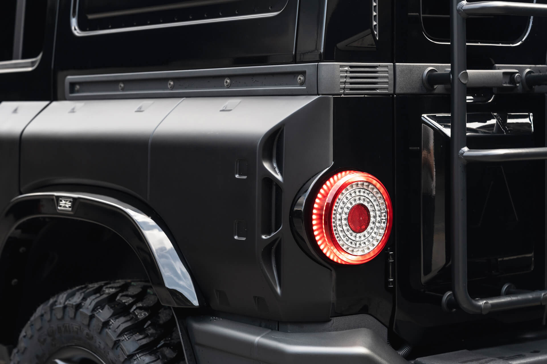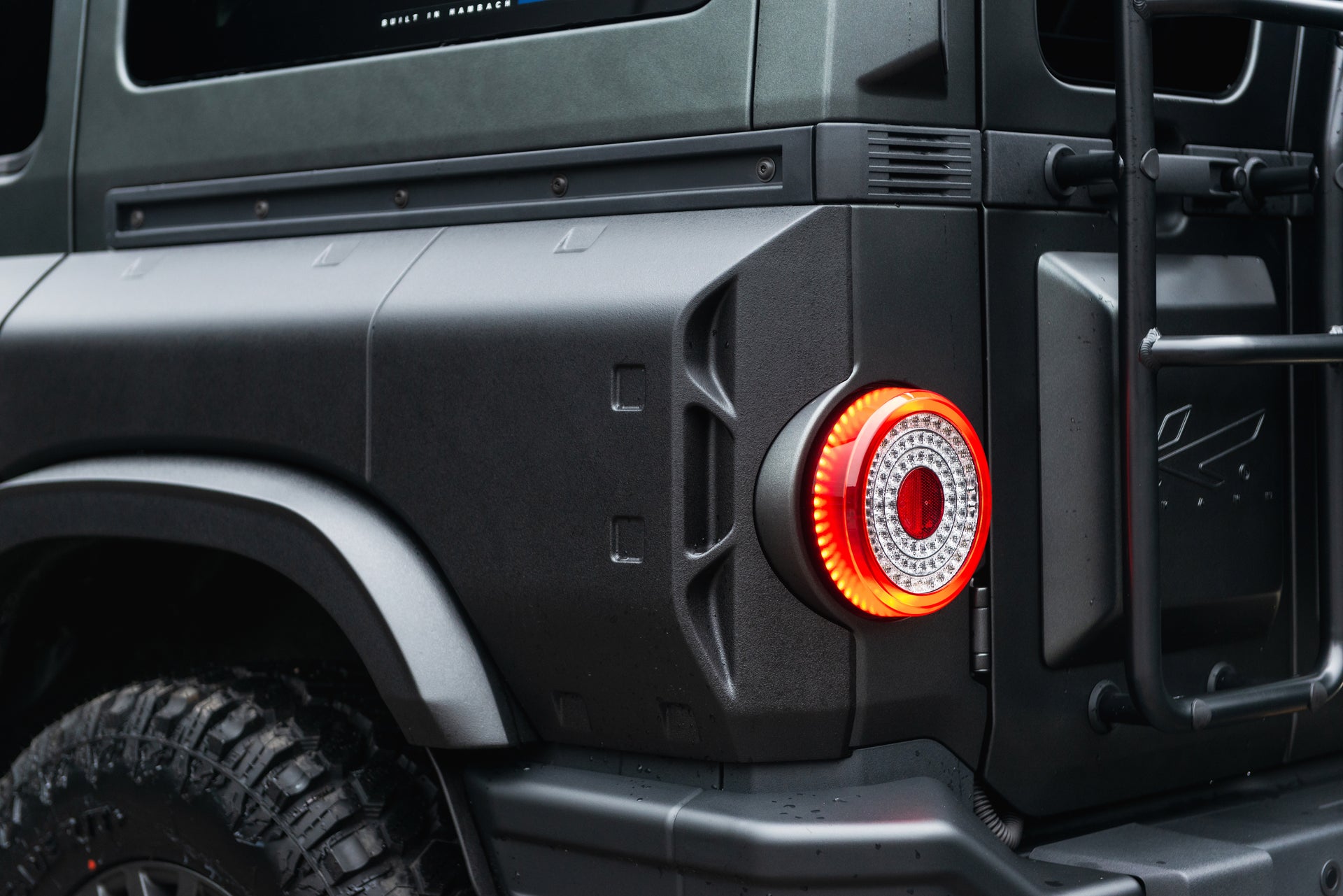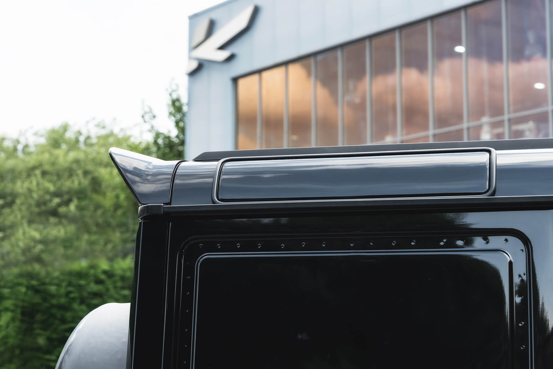 The kit combines wide body styling with unique detailing such as the Hammer Grille Cowl, Roof Wing, Mondial wheels and spare wheel cover, together creating a purposeful and commanding finish for the modern Grenadier.