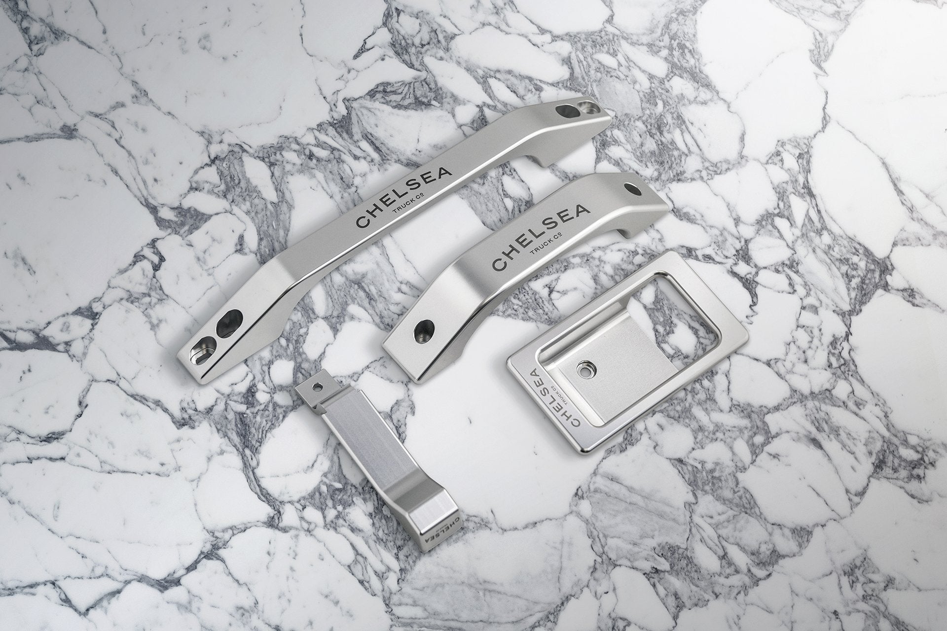 Land Rover Defender 90 Machined Aluminium Interior Handles with Chelsea Truck Company Logo