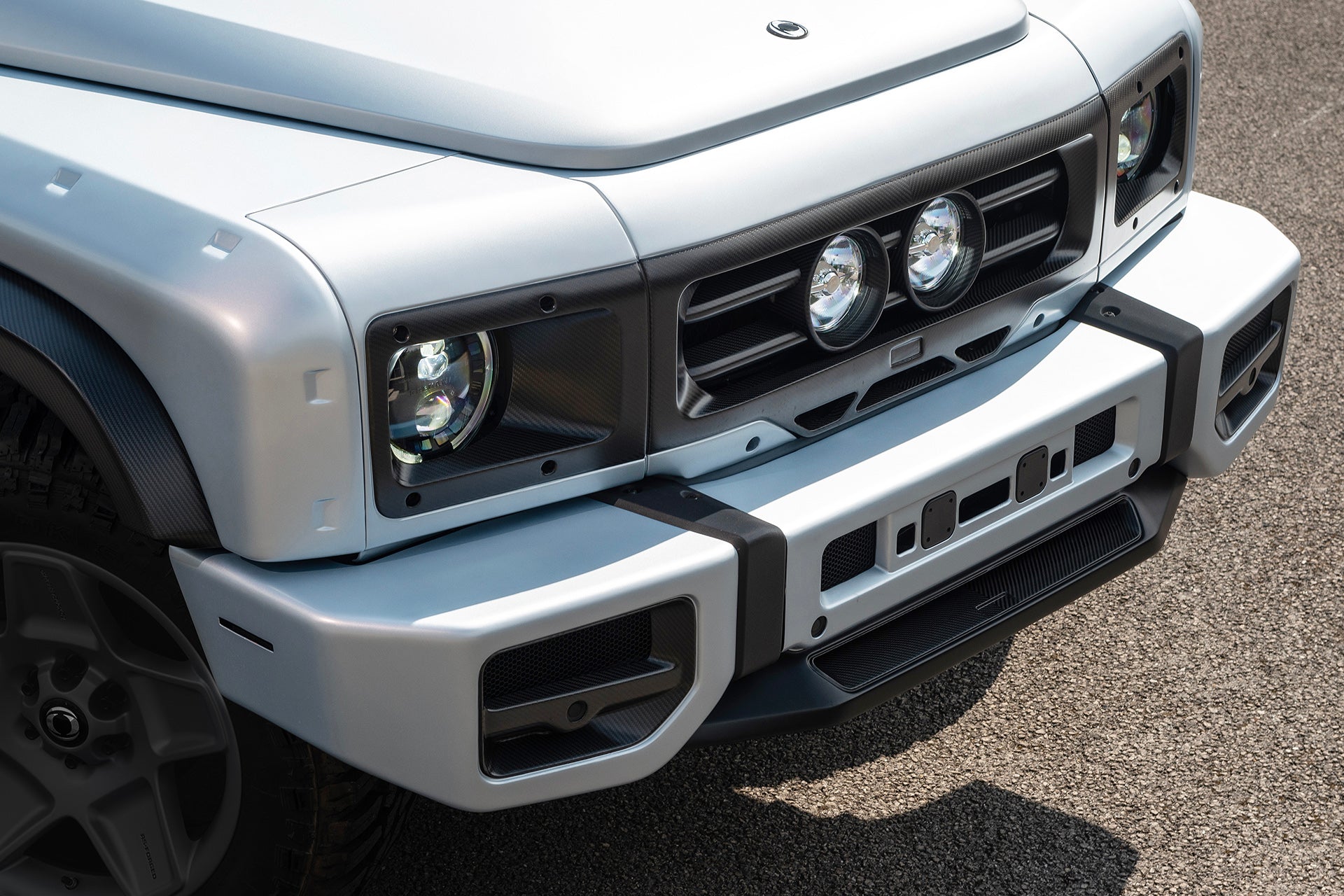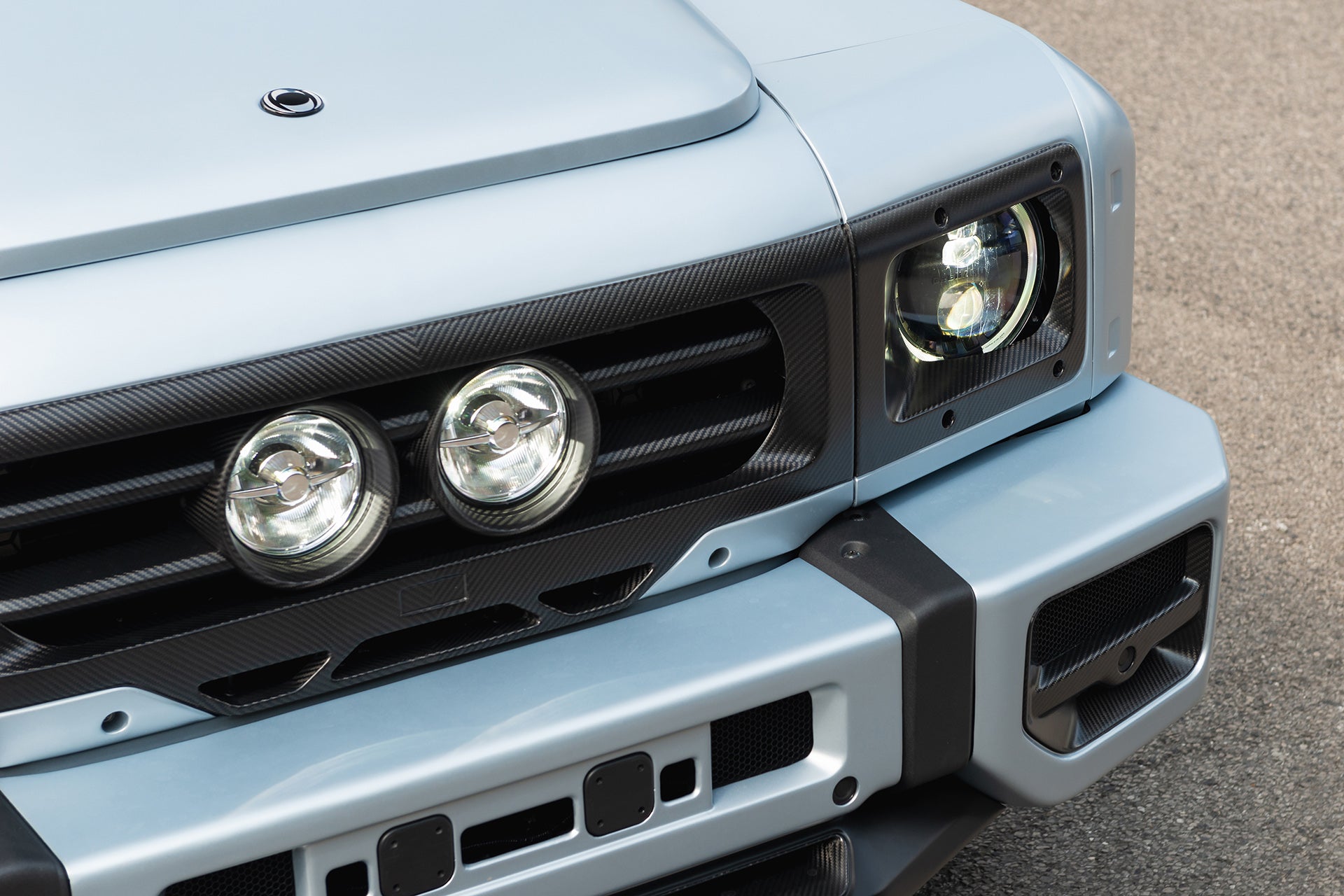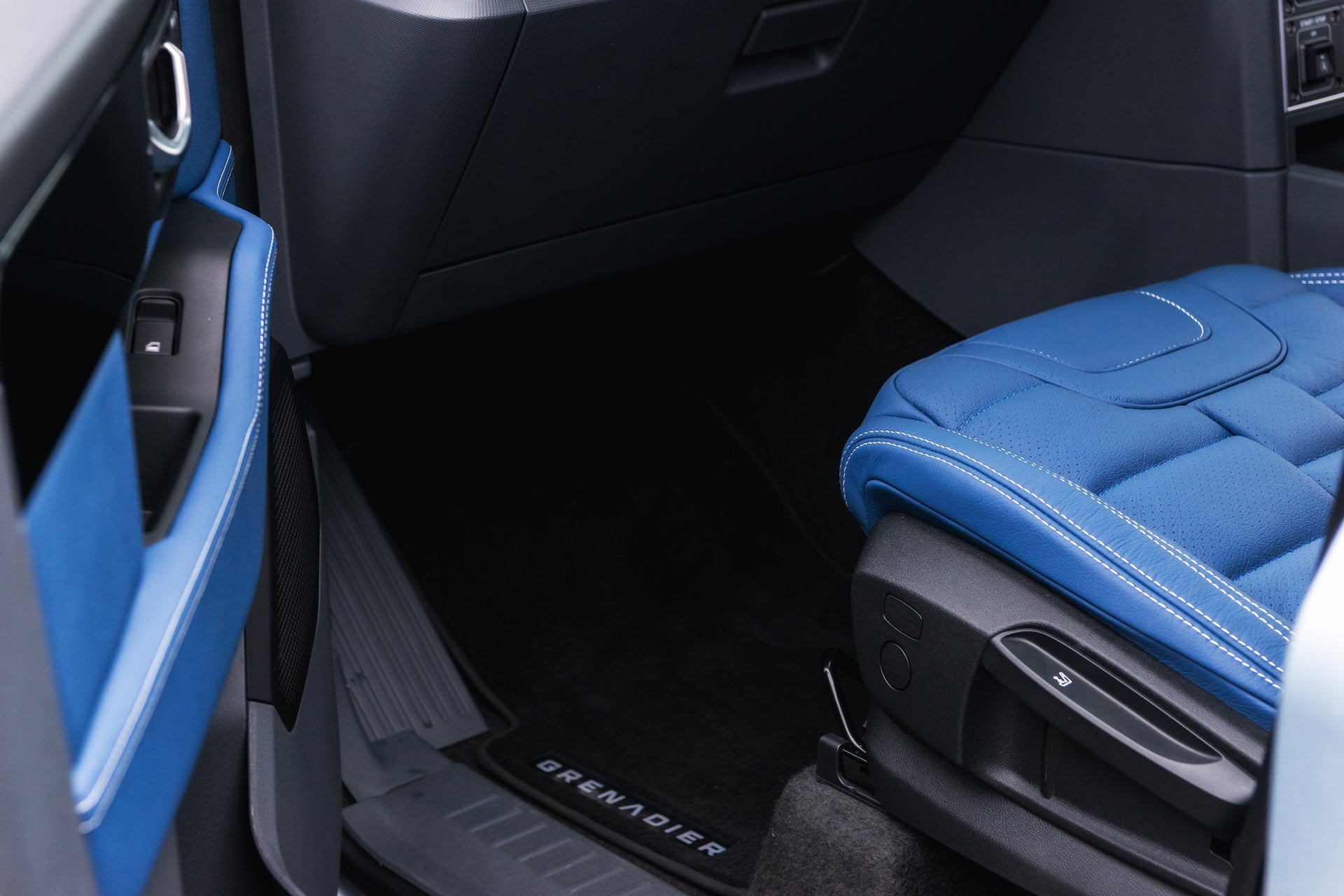 Signature exterior details, like wide wings and wheel arches, now boast a satin body finish with exposed carbon fibre accents for a subtle yet striking look. The utilitarian front and rear bumpers feature refined colour splits, creating seamless harmony with the Grenadier’s original design.