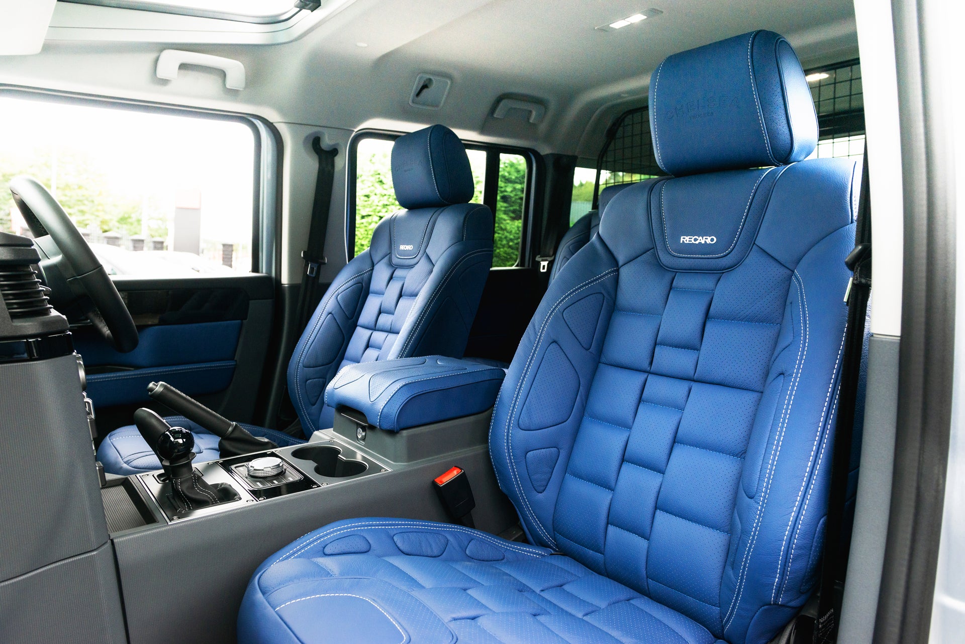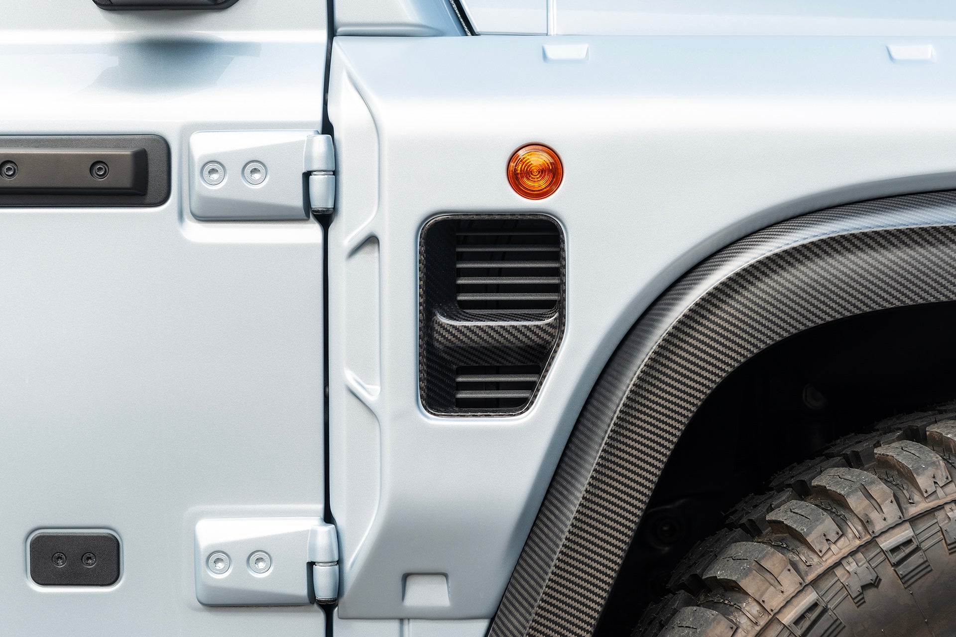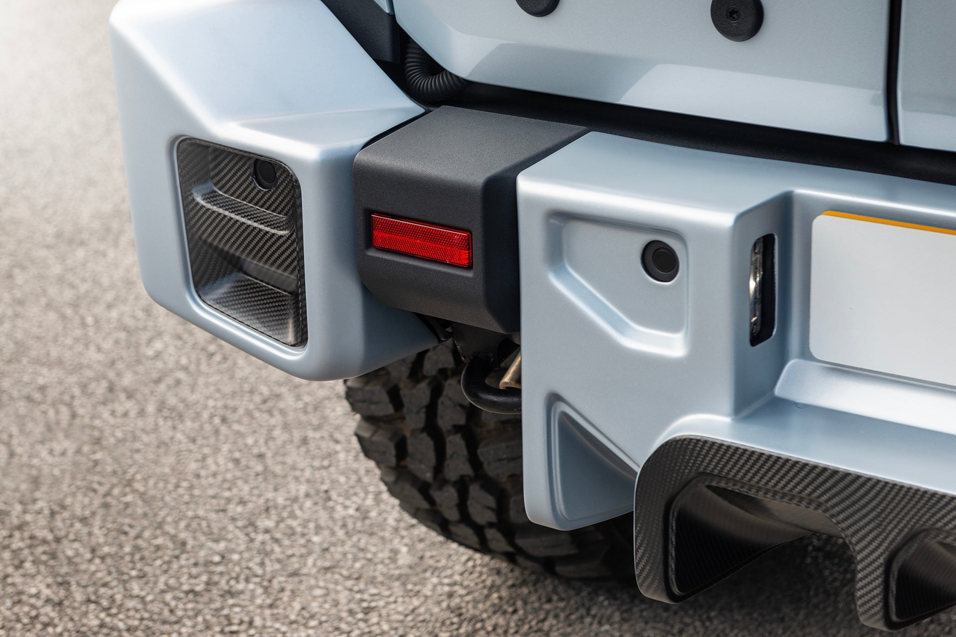 Signature exterior details, like wide wings and wheel arches, now boast a satin body finish with exposed carbon fibre accents for a subtle yet striking look. The utilitarian front and rear bumpers feature refined colour splits, creating seamless harmony with the Grenadier’s original design.