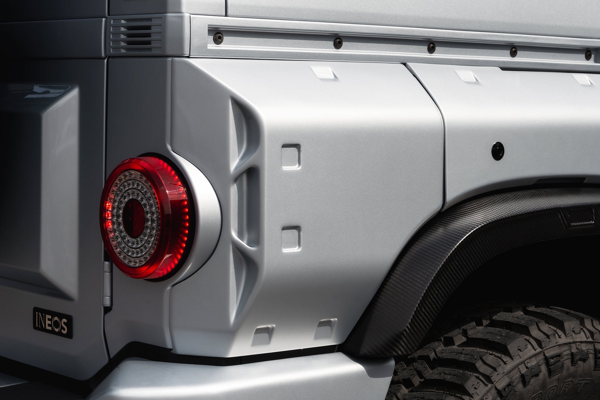 This exclusive prototype also debuts a Central Roof Light with integrated LED light, drawing inspiration from Formula 1 air intakes for an aerodynamic, high-performance edge. This F1-inspired feature not only enhances functionality but also pays homage to Ineos's distinguished history within Formula 1.