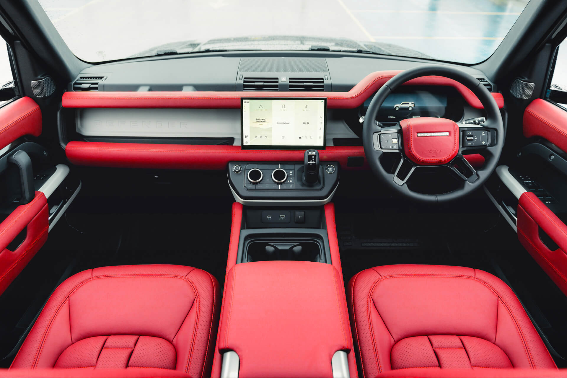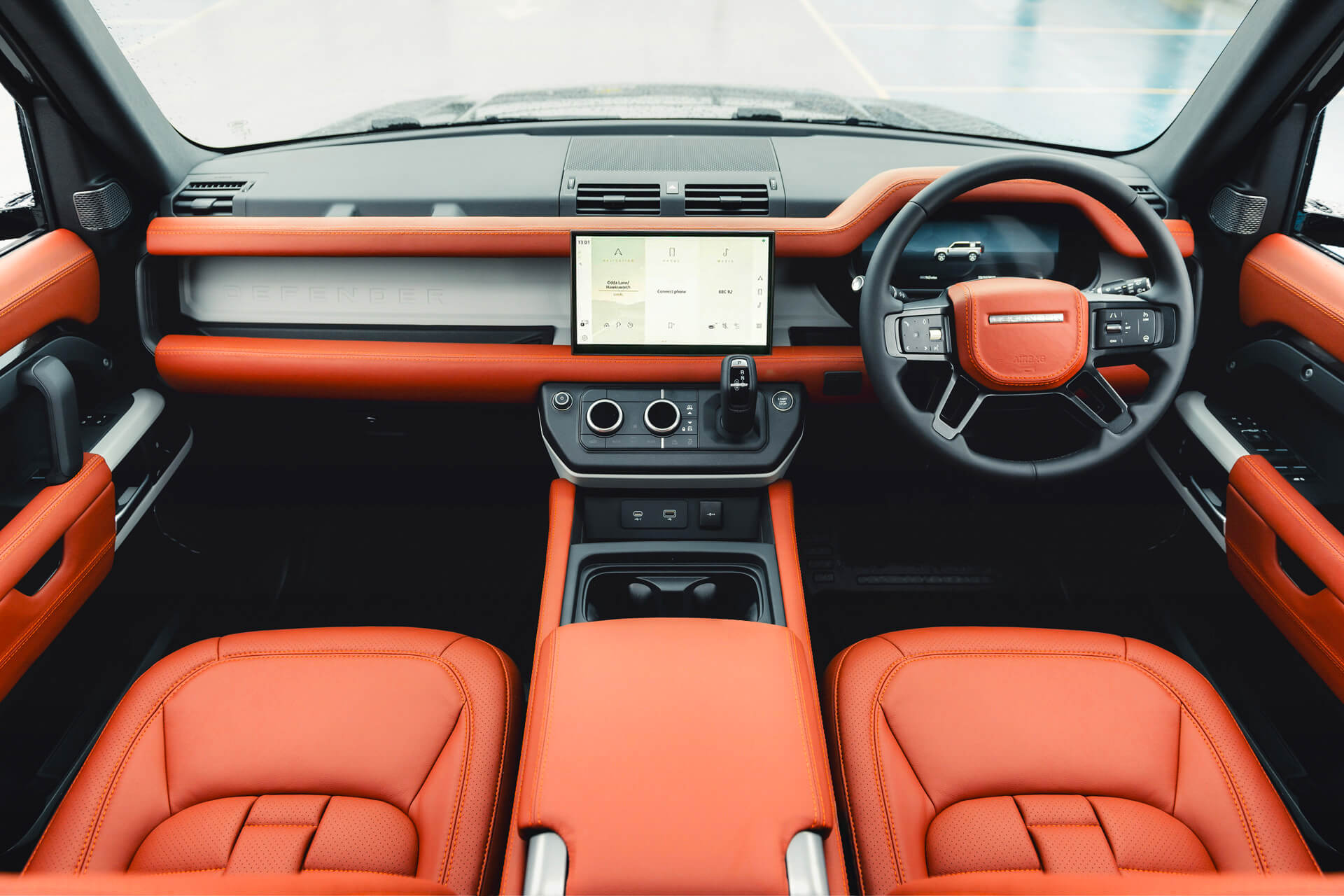 For a truly personalised finish, mix and match seat and cabin colours, or select custom materials and design details. Contact our team to discuss your vision. We will create a bespoke interior trim tailored exclusively to your Defender.