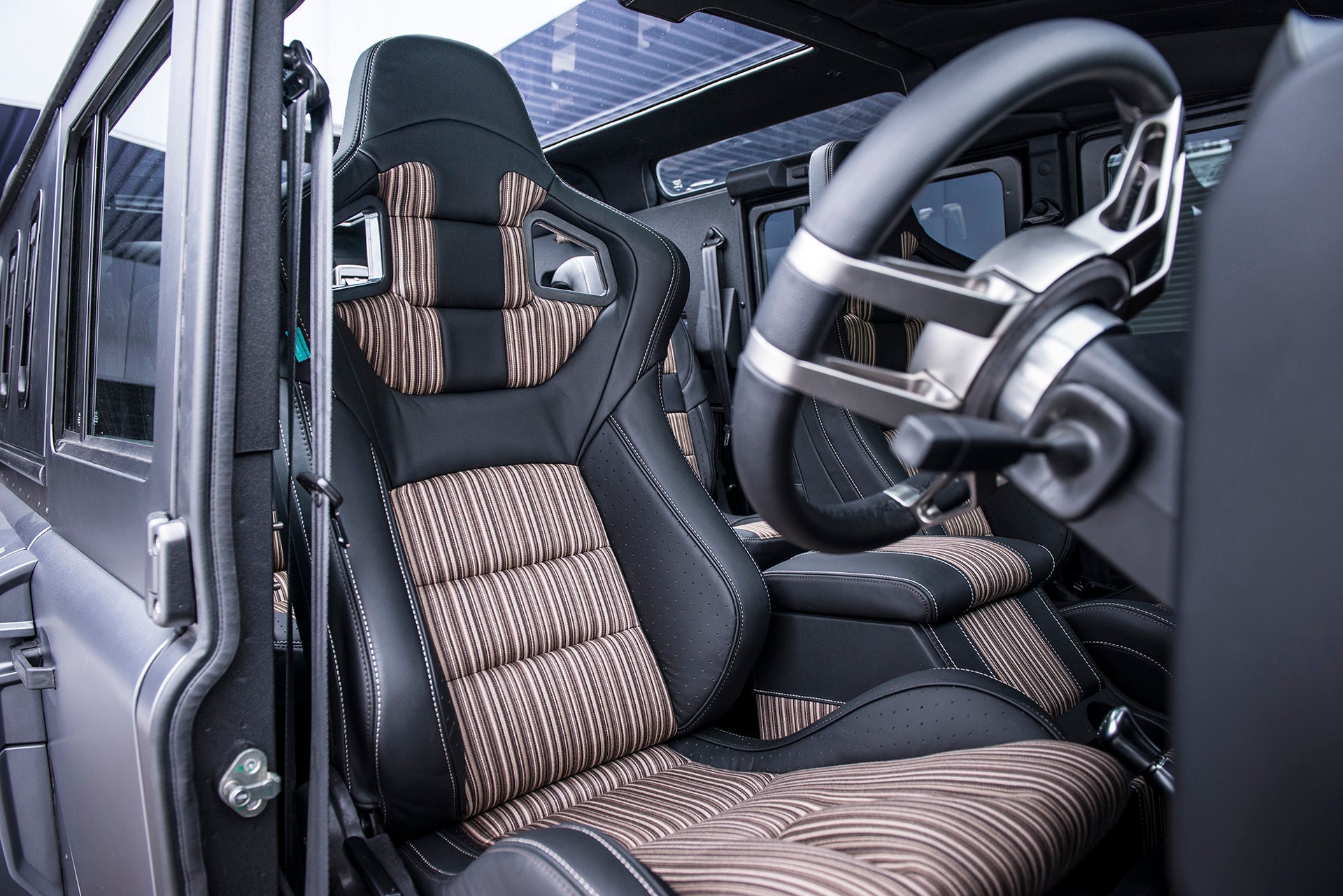 Combining traditional techniques with superb craftsmanship and engineering expertise, Kahn has created an instantly recognisable, aggressive-looking vehicle boasting genuine 6-wheel drive capabilities. Drawing inspiration from the aesthetics of Kahn’s popular Chelsea Truck Company vehicles, the Defender design language has been dialed up with a styling package consisting of 'Volcanic Rock' coloured paint, front and rear wide wheel arches and Kahn's signature X-Lander front grille. Inside the cabin, the vehicle accommodates up to 9 people in a degree of luxury with which Kahn has become synonymous.