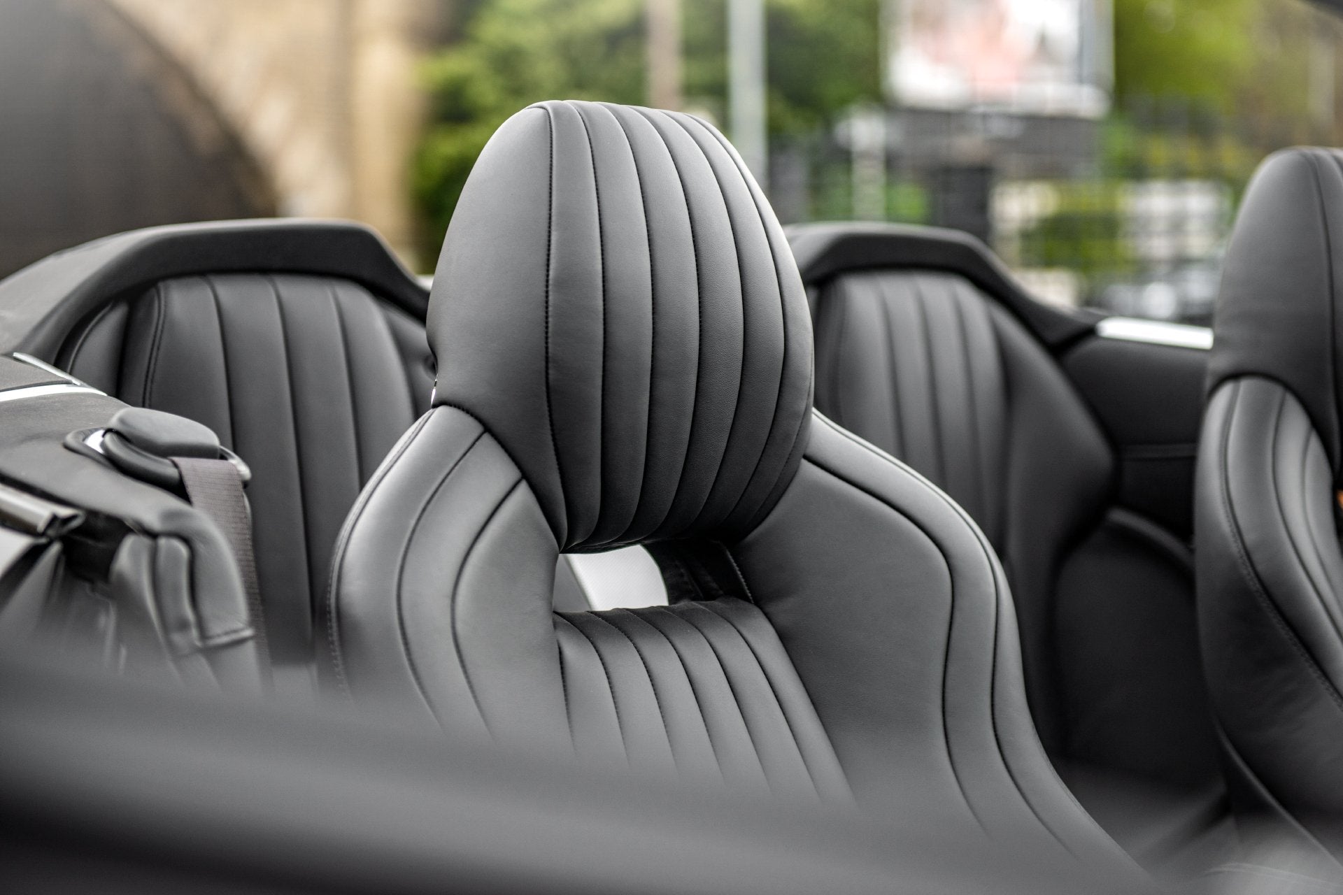The signature central bulge of the bonnet continues to the highly defined lines of the roof, which flow outwards to the widened C-pillars and rear wings. These lines and curves are sculpted in hammer formed aluminium, lending a muscular definition to the car's surfaces.