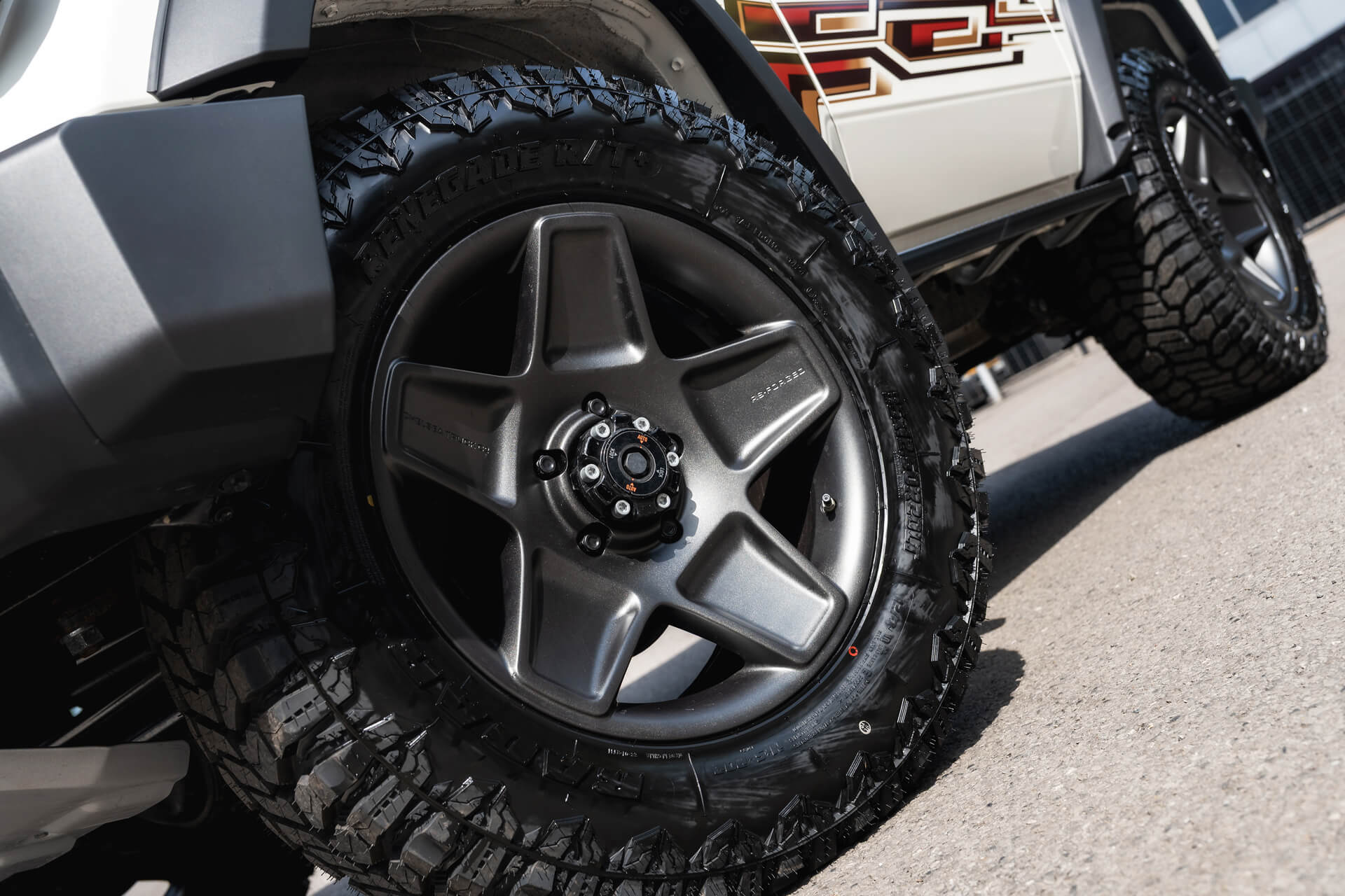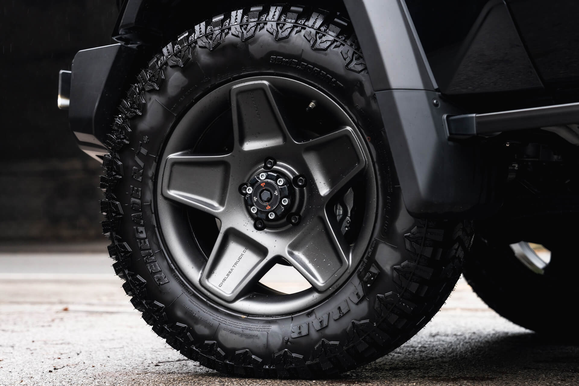 6) Are Chelsea Truck Company wheels OEM? No, our wheels are exclusively aftermarket designed by KAHN®. They are engineered to complement the Defender's style while offering superior strength and performance compared to standard OEM wheels.