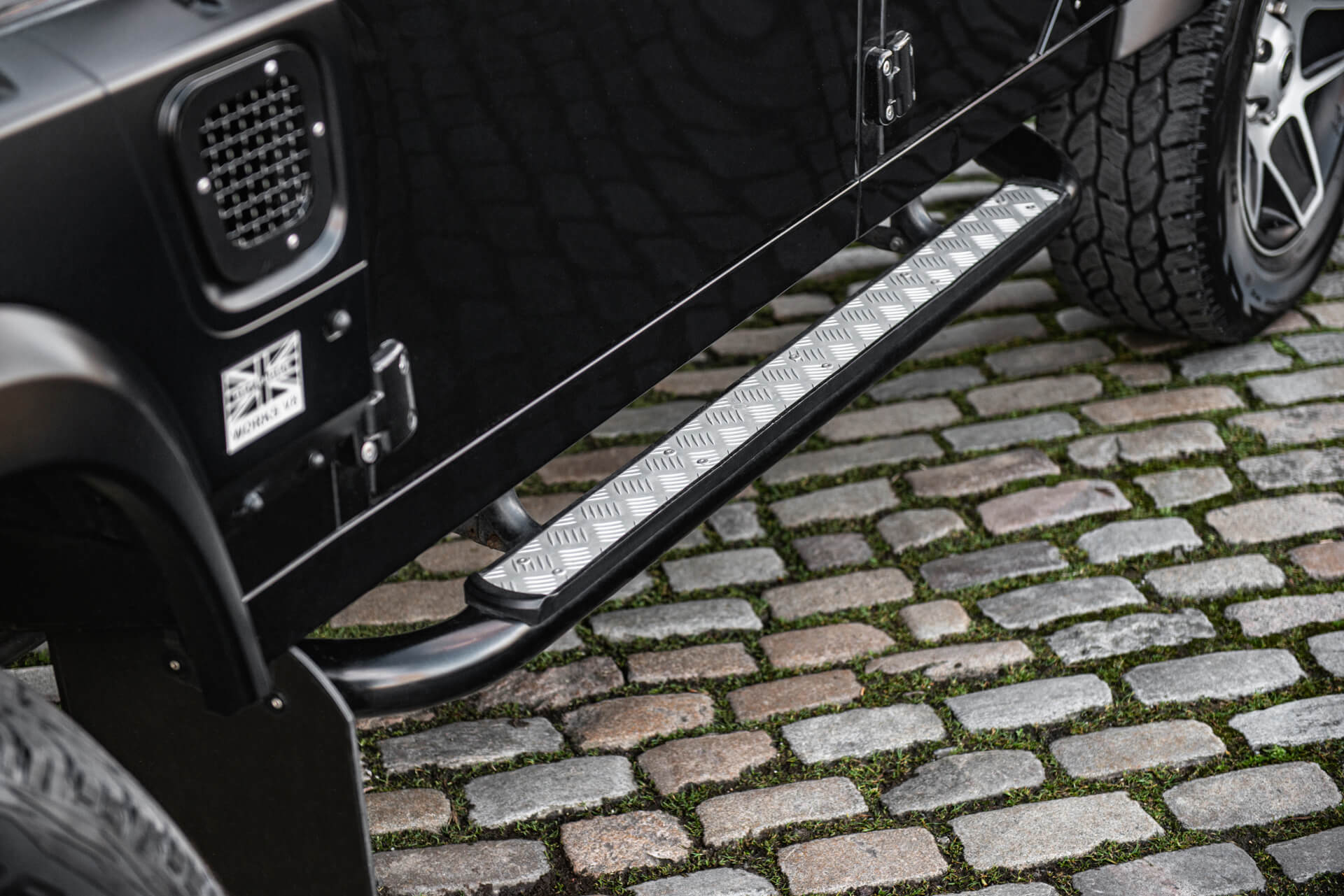 The addition of our exclusive Wide Track wings, featuring integrated bolt detailing, subtly transforms the Defender’s stance. The design cues are militaristic yet sophisticated, creating a powerful, OEM-plus aesthetic that commands attention without overwhelming the eye.