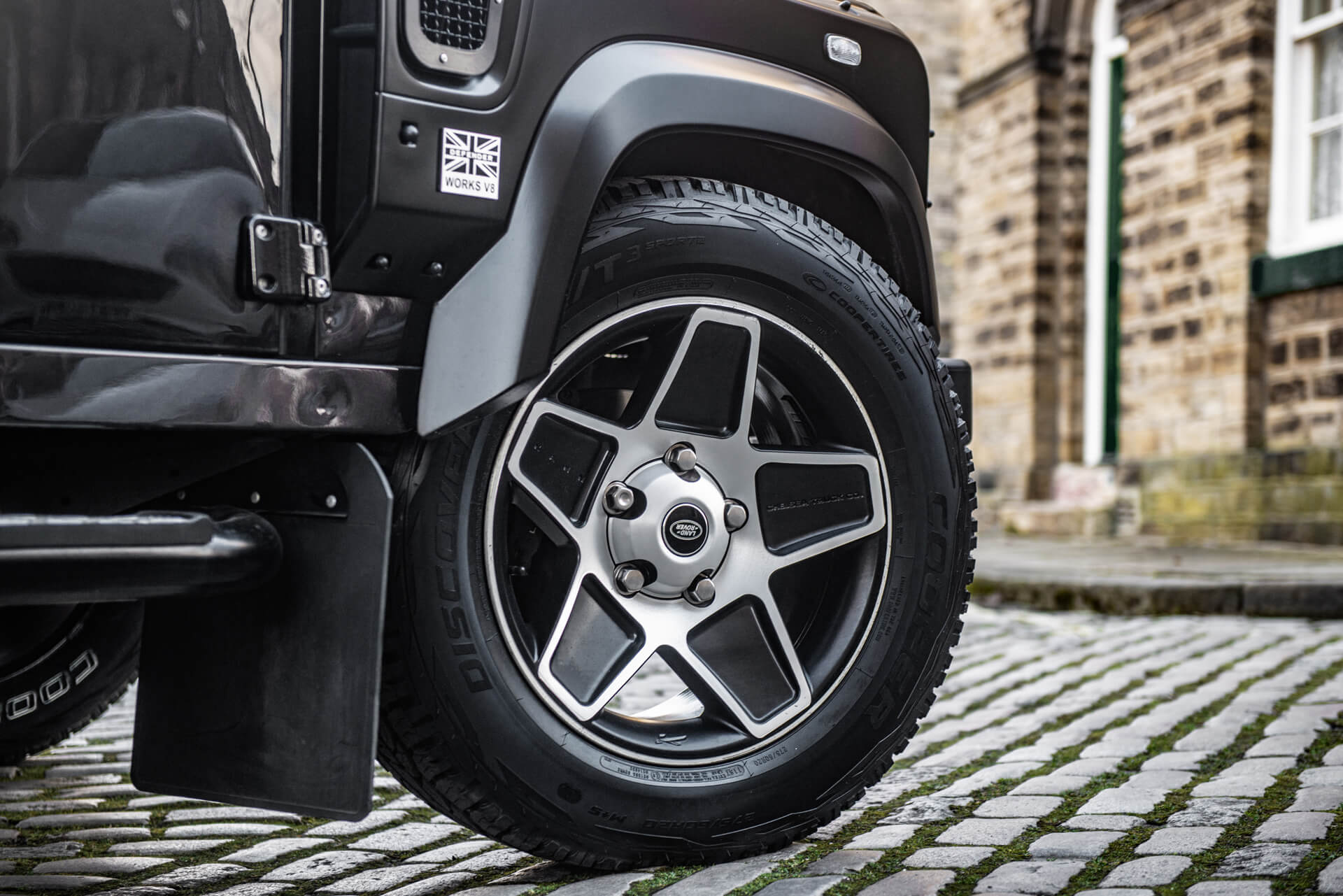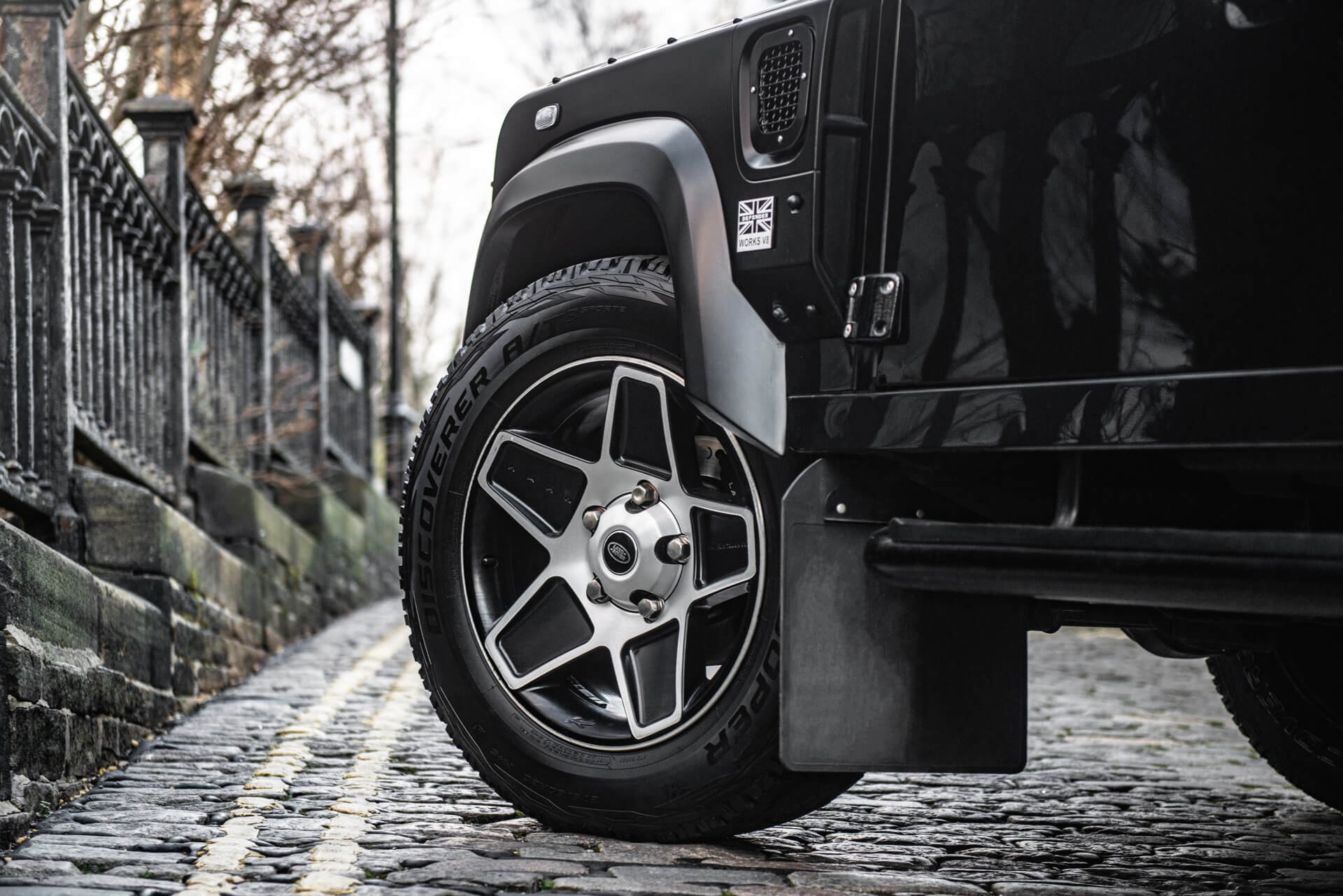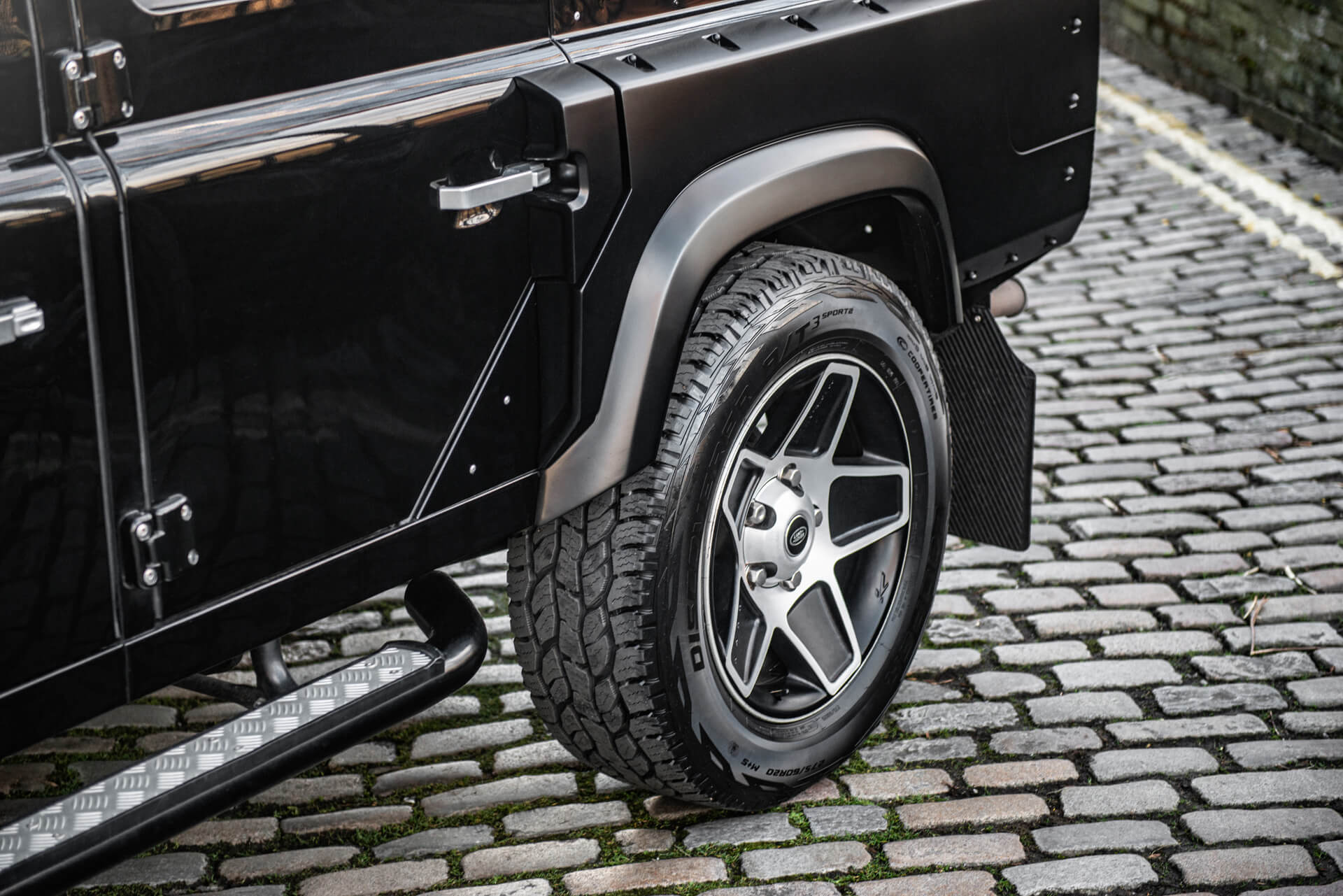 To complete the transformation, we fitted a custom set of our flagship Model Retro wheels in a striking diamond-cut satin black finish. These wheels offer a bold yet elegant contrast, reinforcing the Defender’s luxurious yet rugged persona.
