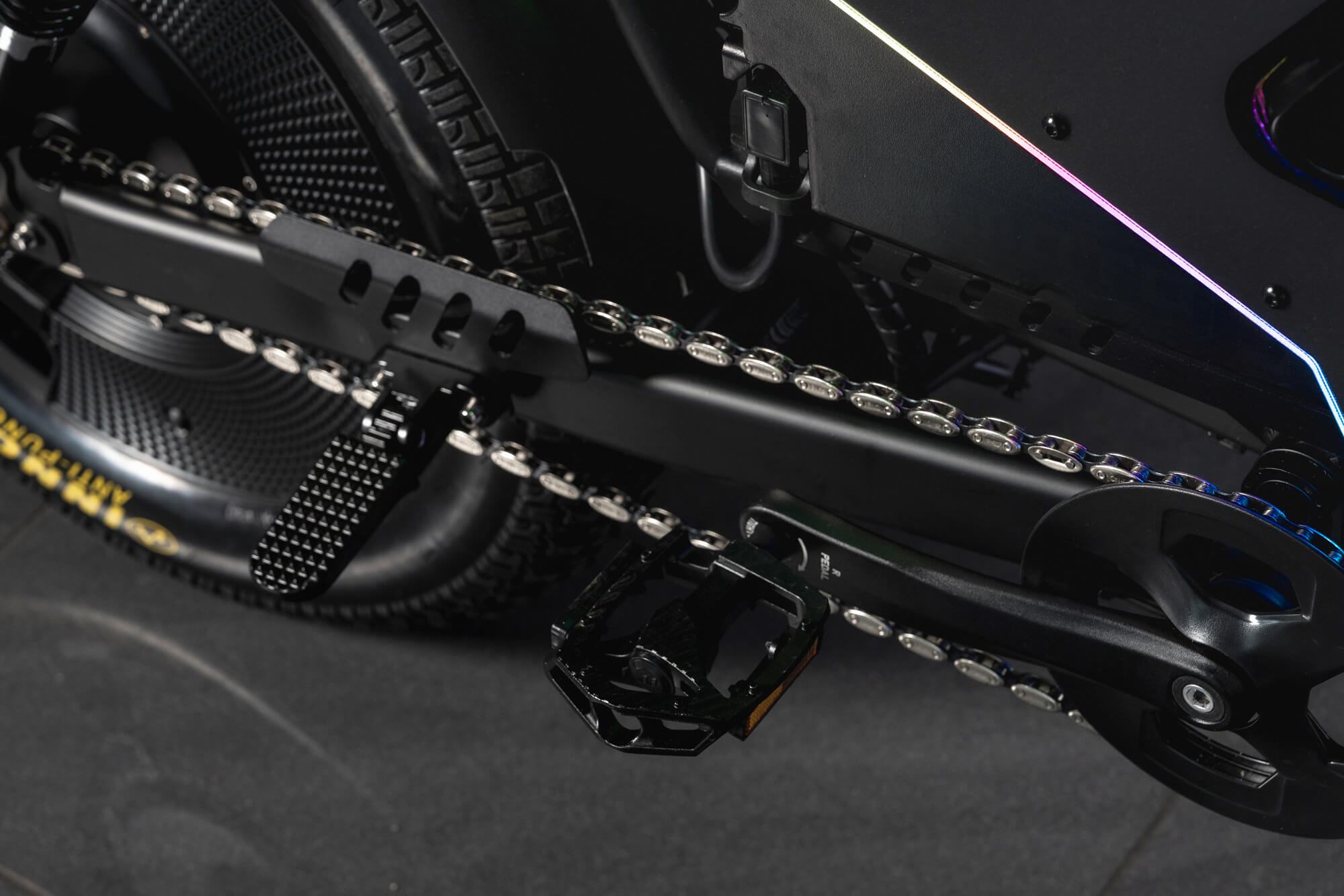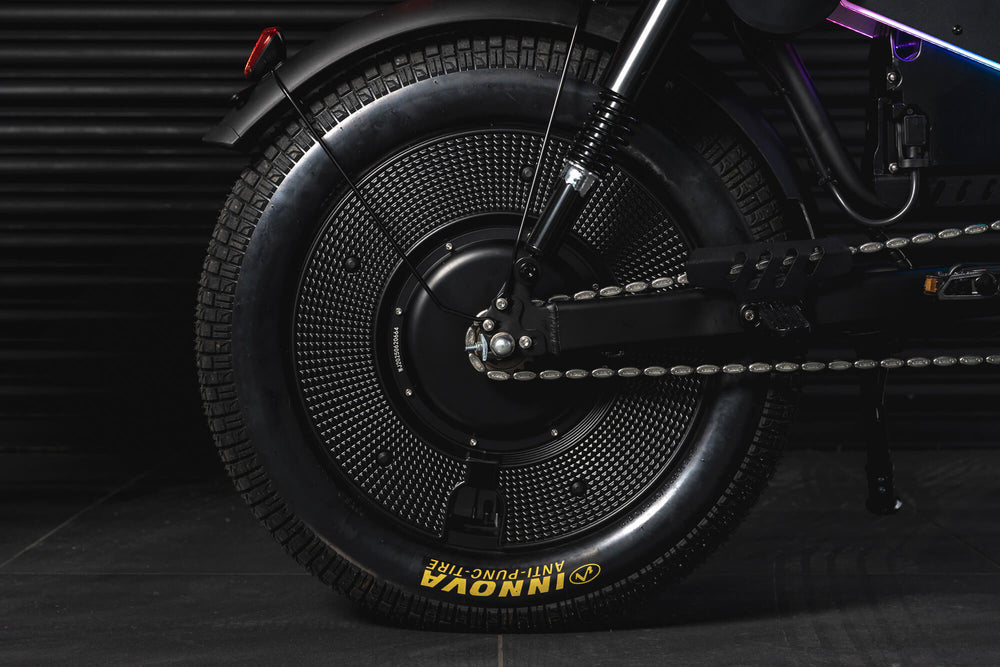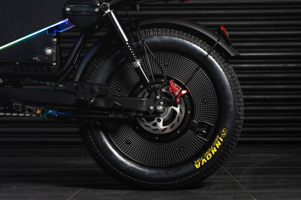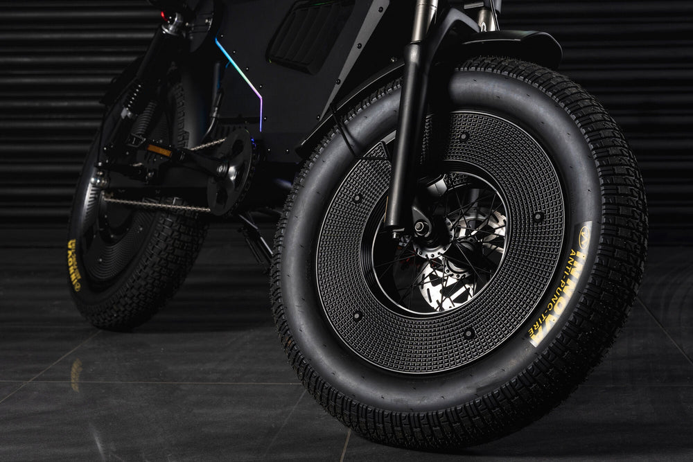 - Puncture-resistant 20×5.0 tyres with reinforced double-wall rims