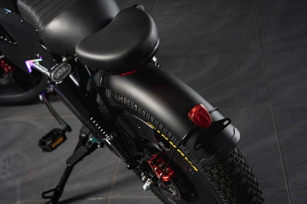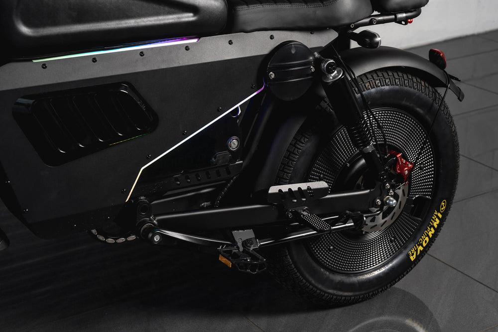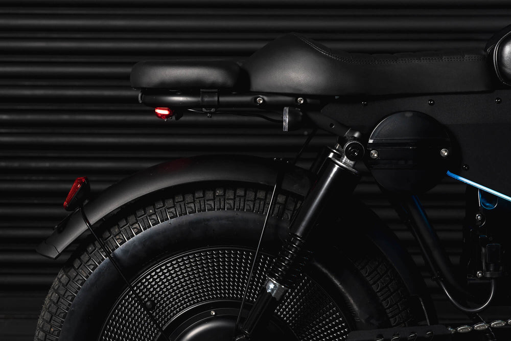 The Wulf 3000 features a retro-inspired aluminium alloy frame, sculpted with modern proportions and a balanced ergonomic geometry. This golden-triangle architecture provides stability, confidence and a composed riding position, while reinforcing the bike’s premium, engineered character.